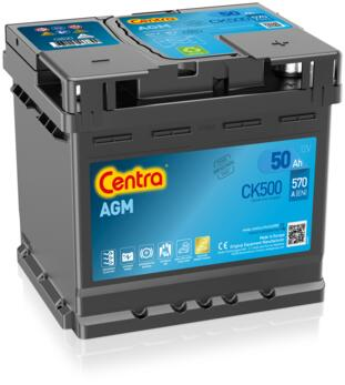 Akumulator CENTRA AGM CK500 12V 50Ah 570A to wysokiej klasy produkt z serii Centra AGM (Absorbent Glass Mat) — technologii akumulatorów dedykowanej do nowoczesnych pojazdów z systemem Start-Stop, częstym użytkowaniem w ruchu miejskim oraz instalacjami o większym zapotrzebowaniu energetycznym niż typowe klasyczne akumulatory.