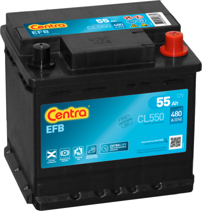Akumulator CENTRA EFB CL550 12V 55Ah 540A to nowoczesny akumulator wykonany w technologii EFB (Enhanced Flooded Battery), która została opracowana z myślą o współczesnych samochodach z systemem Start-Stop oraz pojazdach o podwyższonym zapotrzebowaniu na energię.