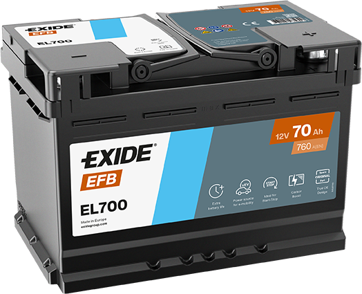 Akumulator EXIDE EFB EL700 12V 70Ah 760A należy do serii Exide EFB (Enhanced Flooded Battery) — technologii opracowanej z myślą o nowoczesnych samochodach wyposażonych w system Start-Stop i o podwyższonym zapotrzebowaniu na moc elektryczną.