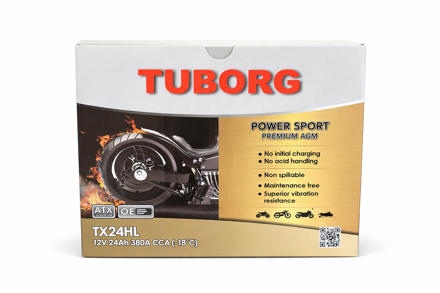 Tuborg TX24HL YTX24HL 12V 24Ah 380A to wydajny, wzmocniony akumulator motocyklowy klasy premium, przeznaczony do dużych motocykli, cruiserów, quadów oraz pojazdów wymagających maksymalnej mocy rozruchowej.