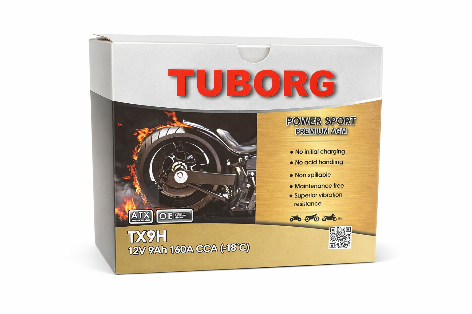 Tuborg TX9H YTX9 12V 9Ah 160A to wzmocniony akumulator motocyklowy zaprojektowany dla użytkowników oczekujących większej mocy i trwałości niż w standardowych modelach.
